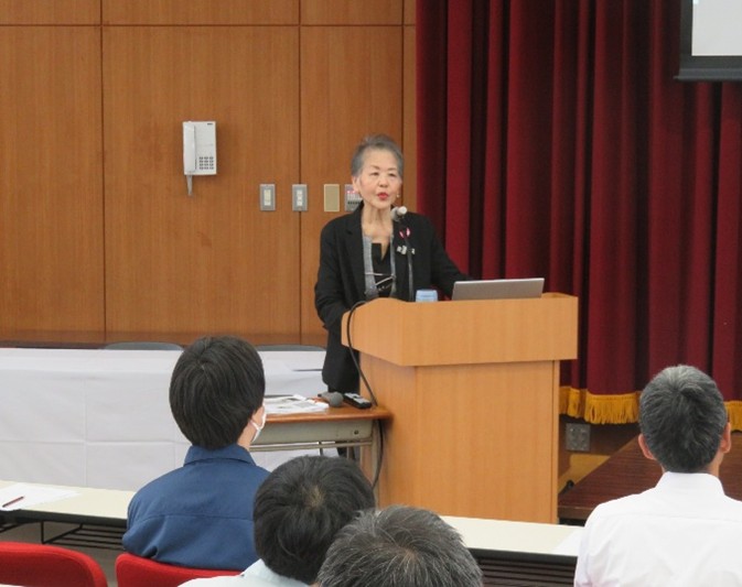 講師は、鹿沼市国際交流協会外国人相談員の行本(ゆくもと)リジア氏。自身の経験や日本に住む外国人の悩みなど、日本に暮らす外国人の基本情報の他、「やさしい日本語」のポイントについて紹介しました。