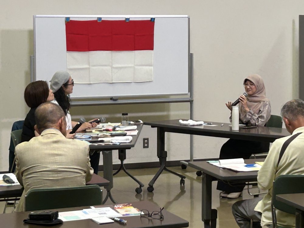 コミュニティFM放送局・ミヤラジで放送している「あなたの隣の外国人」の出張公開録音を「とちぎグローバルセミナー」で行うというこのプログラムは、ナビゲーターの柏木聖子さん(ミヤラジ)とパーソナリティの栗又由利子さん(TABUWATA共同代表)が、インドネシアから宇都宮大学大学院に留学しているイスラム教徒のリンジャニ・ハナニ・スユさんをゲストに迎え、イスラム教徒としての日本での暮らしについてお話を聞くという内容です。