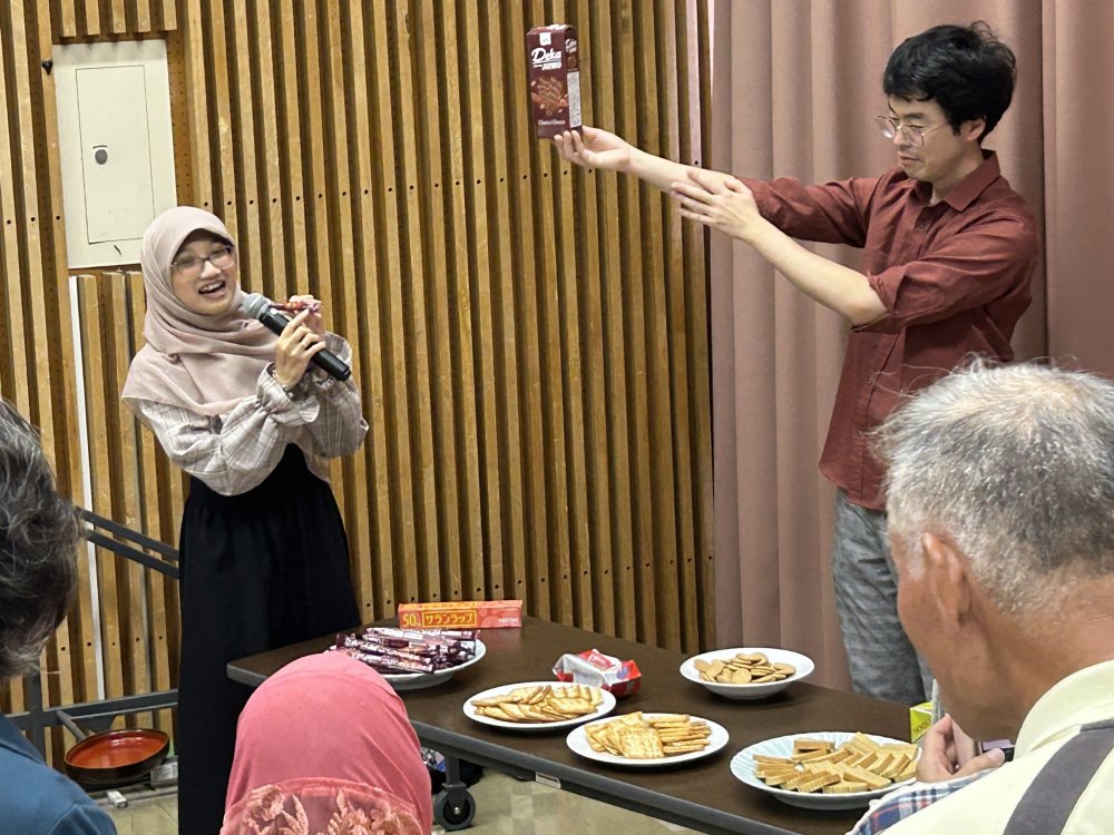 公開録音終了後に、ハラール食品として用意されたインドネシアのお菓子をリンジャニさんが紹介して、参加者はお茶と一緒に試食しました。
